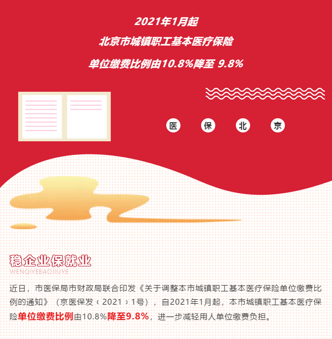 北京市城镇职工基本医疗保险单位缴费比例下降