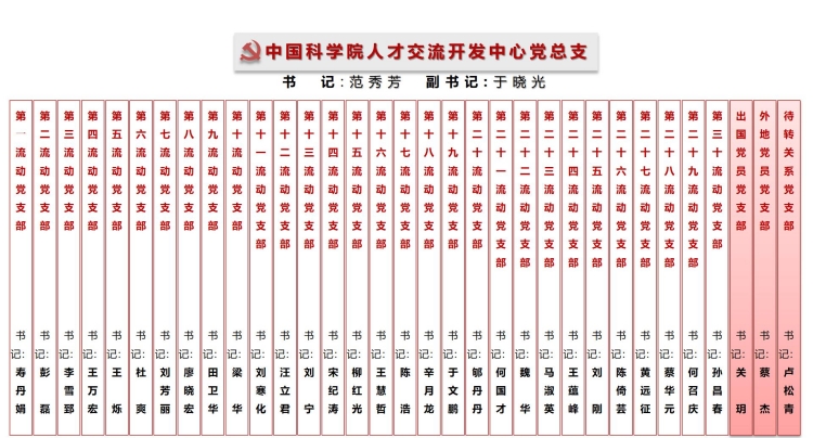 党总支:范秀芳(书记)于晓光(副书记)舒扬(委员)寿丹娟(委员)汪立君(委员)